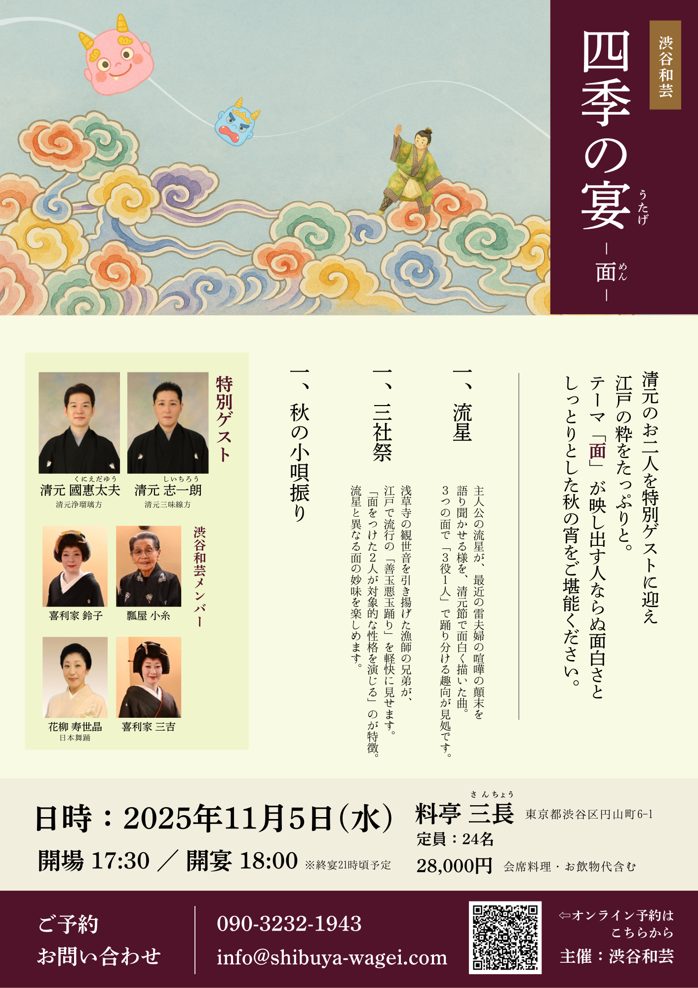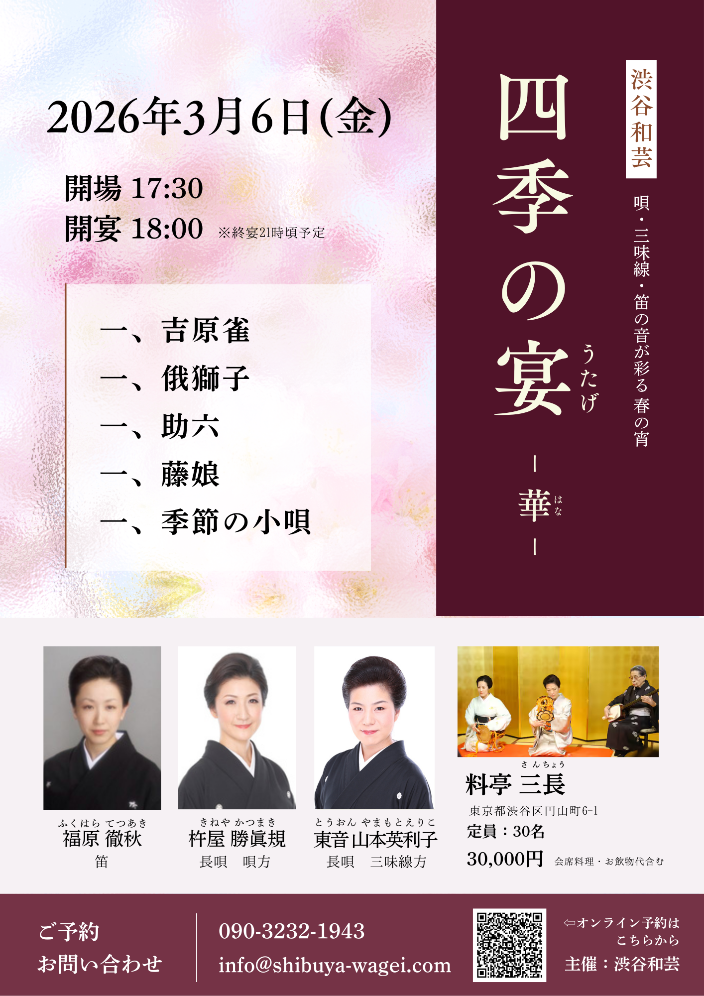 渋谷和芸(しぶやわげい)は、「渋谷円山町の芸者」と「渋谷にゆかりのある日本の伝統芸能の担い手たち」が立ち上げた活動です。